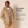 COLD-WEATHER STYLING: Stay warm in this versatile water-resistant lightweight puffer jacket featuring a full-length center-front zipper and hood.
