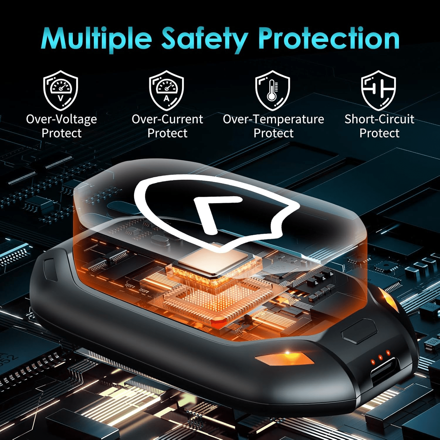 🔥【SAFE & COMFORTABLE】 The shell of the hand warmer is made of ABS high-temperature and flame-retardant material. The hand warmer is very safe for the built-in intelligent temperature control chip and heating system, which provide protections including safeguards against overcharge, overvoltage, overcurrent, and short circuits. Use it with confidence.