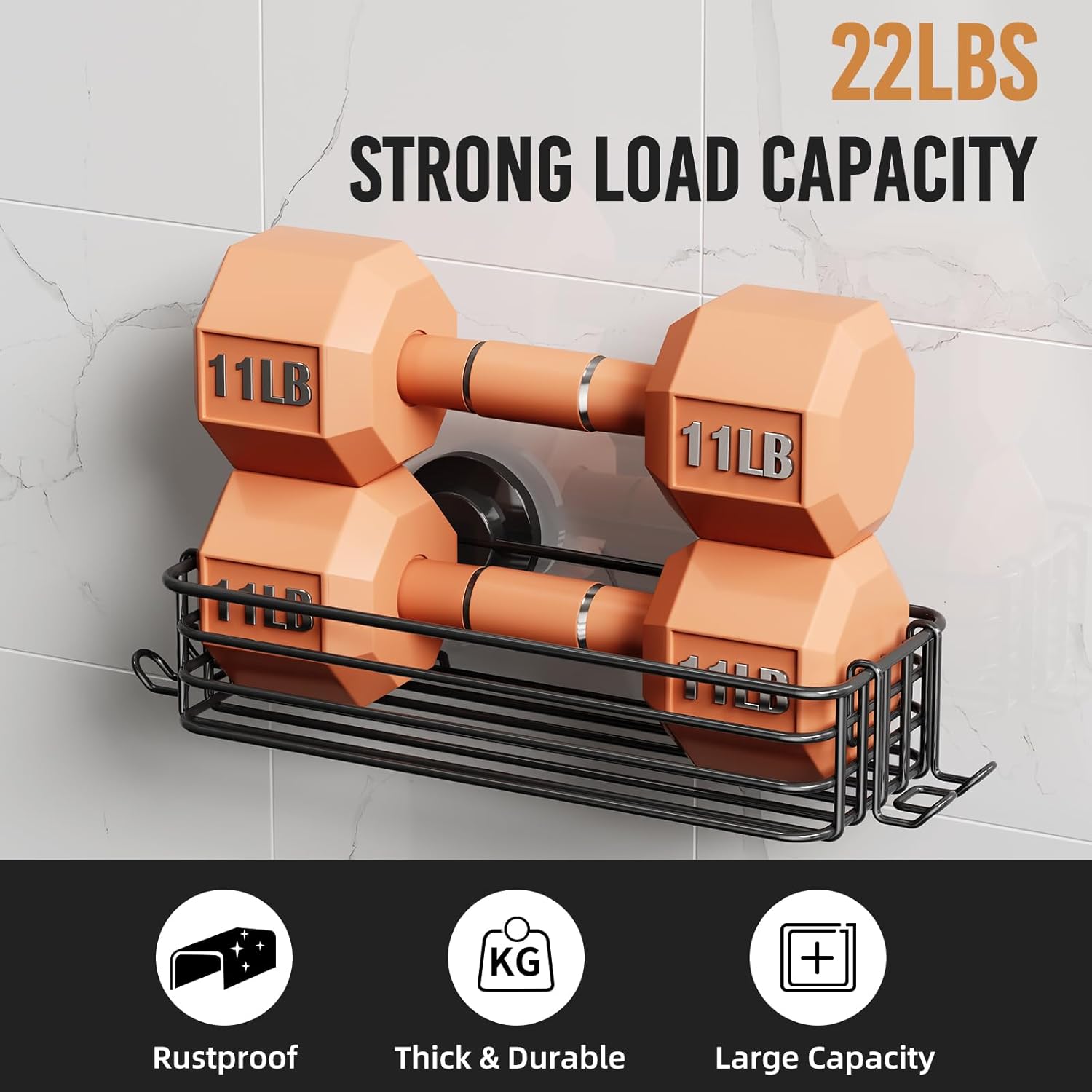 • Powerful & Durable Suction: TPE Suction Cup with bionic design of octopus tentacles and ABS plastic Hook ensures weather proof(-4°F-174°F), waterproof, and anti-aging; bathroom shower organizer with thicken plastic can hold up to 10 KG / 22 LBS and stick sturdy for years after installation without any concerns