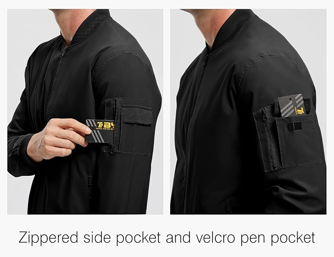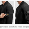 Five Functional Pockets: 2 front zippered pockets, 1 zippered arm pocket, 1 pencil pocket on the left sleeve and 1 inner pocket for wallet,card etc.