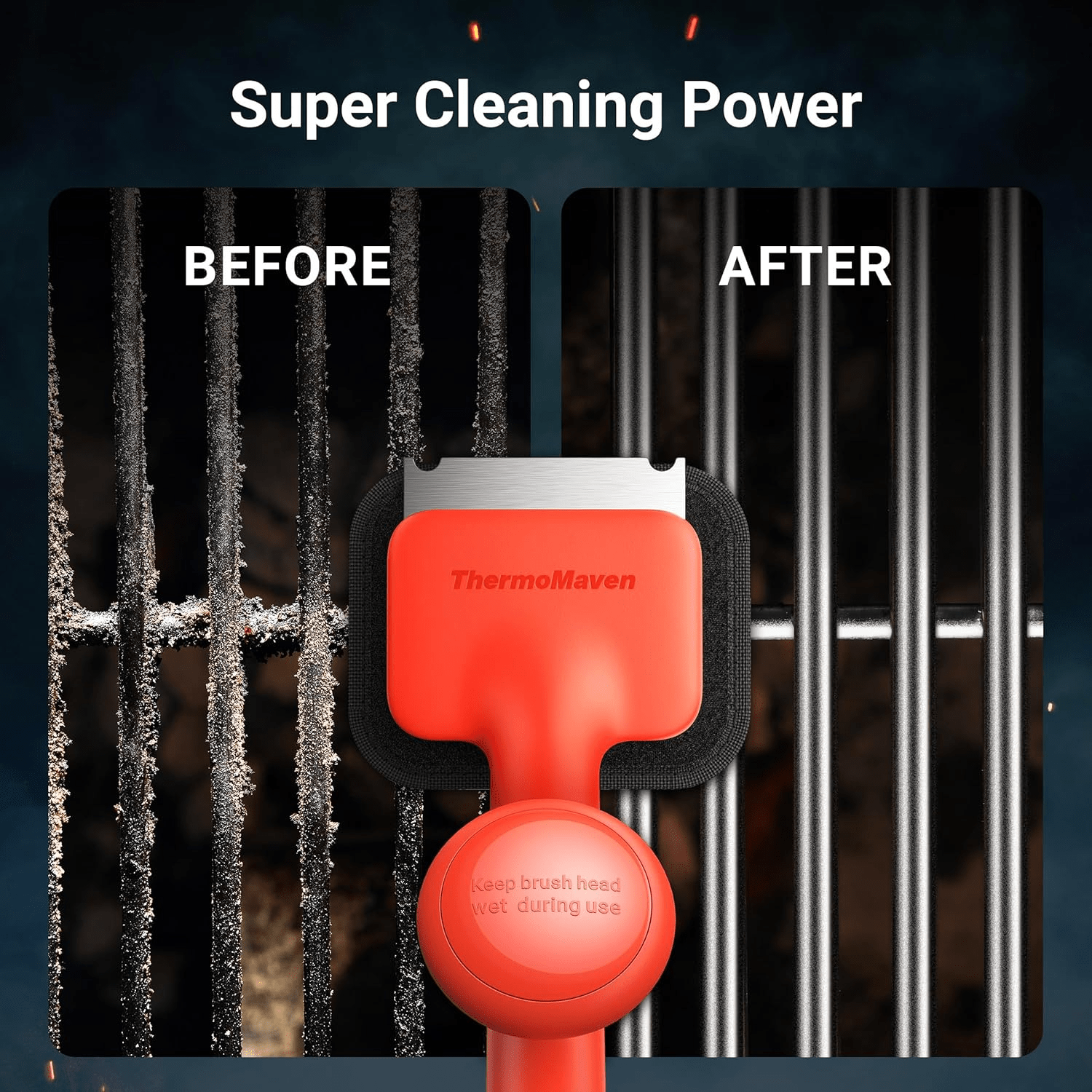 𝐄𝐟𝐟𝐢𝐜𝐢𝐞𝐧𝐭 𝐆𝐫𝐢𝐥𝐥 𝐁𝐫𝐮𝐬𝐡 𝐰𝐢𝐭𝐡 𝐒𝐜𝐫𝐚𝐩𝐞𝐫: The ThermoMaven grill brush is equipped with a versatile thick and stiff scraper, designed for Porcelain / Gas / Charcoal Grill and flat top griddles