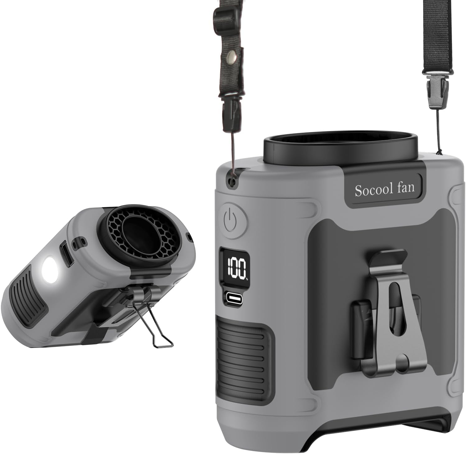 Socool 10000mAh Portable Waist Fan Clip on Wearable Belt Personal Fan Rechargeable Battery operated With 5 Speeds & Flashlight Neck Hands-Free 40H Cooling For Outdoor Camping Travel (Gray)